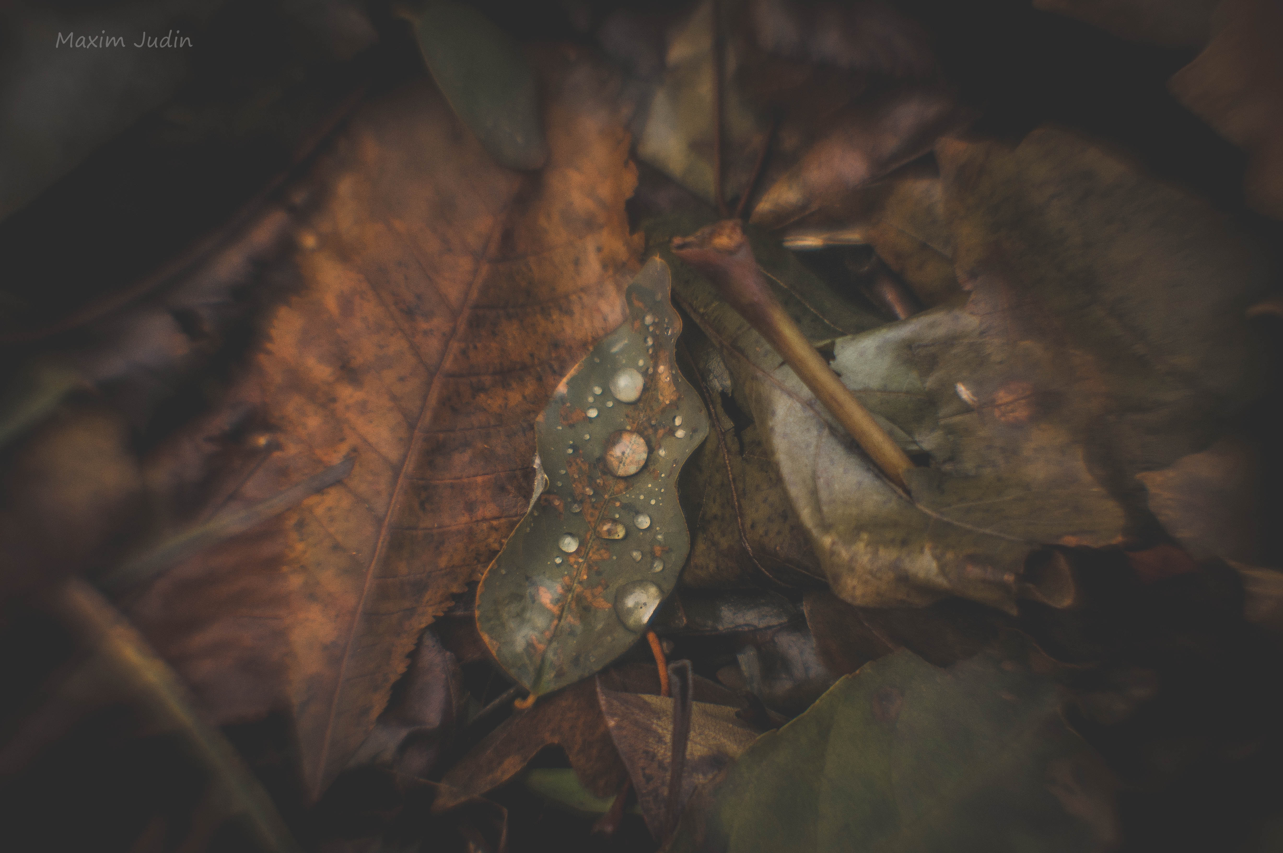 Лист и капли.