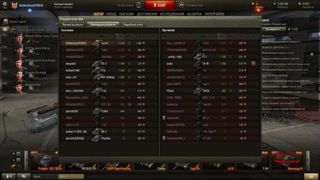 Ну-с, коллеги, учитывая, что это первое сообщение на новом форуме, я хотел бы написать его о ПТ, но в данный момент в душу запал именно этот танк.A34 Comet разрабатывали с мая 1943 по февраль 1944, и эта машина была первой среди британских, "почти основных боевых танков". Я не гайдописЕц, потому просто перейду к описанию ощущений от игры на танке. Подвижность Когда речь заходит о СТ, нас явно не в последнюю очередь беспокоит подвижность, и если нас, кошачьих, кормят зубы, да пятнистая шкурка, то волка ноги кормят. И тут же я впервые разочаровался. Нет, утверждать, что она истинно британская (aka Black Prince, Churchill, Matilda), не стану, но просто после сумасшедшего Кромвеля её явно не хватает. Топовый двигатель достаётся от кромвеля, но много счастья это не делает. Разгоняется он явно хуже предшественника, крутить всяких там Су-122-44 уже не получится, напоминает трамвайность Крусайдера. Ну максималка неплохая, если разогнаться, то можно и за светляками погоняться. Орудие Пушка? Право же, орудие противоречивое. С одной стороны пробитие и альфа-страйк оставляют желать лучшего, но вот ДПМ лучший на уровне 2150 ХП, сведение в 0.34, в комплекте с сербоголдой и прямыми лапами позволяет в нужной ситуации расшатать любого одноуровнего соперника. Правда сведение в 2.3 секунды удручет. Но и на этот минус у нас есть что противопоставить - стабилизатор вертикальной наводки. Действительно, установив сетап Приводы+Стаб танк становиться просто таки по-пантеровски точным. Но это не единственный бонус! УВН вниз составляют целых 12°! Бонирование Ну тут совсем печально. Броня корпуса аналогична кромвелю, то есть её нет. Не раз продуманные коллеги ПТводы на Су-152 присылали на 90% ХП. Танкование бортом в первых боях вылилось парочкой дырочек в борту под углом эдак 60-70° И ещё один неприятный факт - появлется фирменная фишка британских Центурионов - крит БК через лоб. Да и в целом, плотная компоновка танка не раз заставляла мня таскать золотые аптечки/ремкомплекты. А вот с башней всё не настолько печально. 111 миллиметров лба маловато, но хитрая форма маски позволяет разочаровывать многих врагов. Прочие показатели Обзор у танка очень хороший. С оптикой позволят безнаказанно подсвечивать, либо даже делать пару выстрелов! Да и маскировка у машины неплохая. В целом машина вполне достойная, не раз я в горячке боя не замечал, как настреливал 3,7, 4,2 к урона! Правда боекомплект улетучивается незаметно. Качать рекомендую, хотя, всё таки, машина на любителя.1 балл -