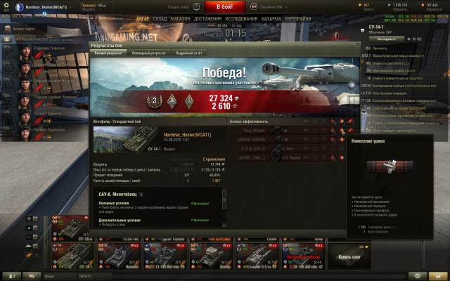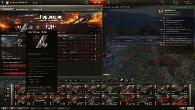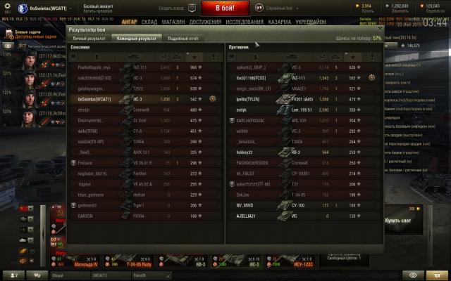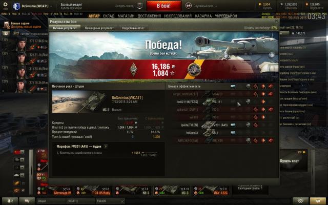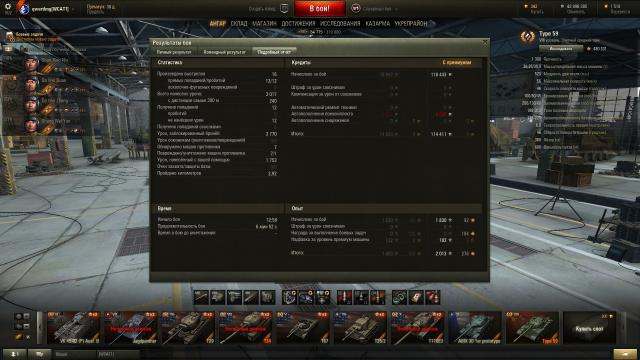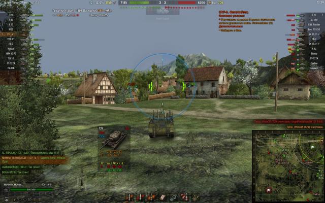Делал ЛБЗ: убейте на арте 3 танка своего уровня или выше и выиграйте бой. Франки просто тупо не шли. Сливы, "не попал", "накрыл" (а какое там накрыл, с их-то недофугасами!), попадания с Левши в корму Т29, у которого было 136 хп на... 130 хп! И прочая... Вышел в бой на Су-14-1. Даже не ЛБЗ сделать, а х3 сбить... Заряжается долго, сводится долго, зато стреляет как!... Как-как, кверху сами знаете чем... Косо, в общем. Так что это машина раздамаживания: авось сплешем заденет, а не убийства. Но тут попался мне любимый Вестфилд (а он и новый вроде ничего, хотя старый роднее)... В начале боя союзники подсветили на горке Т29, заползавший наверх. Неспеша отхлебнув комиссарские 100 грамм из доп пайка, закусив сальцем из того же доп пайка, экипаж неспешно развернул машину, свёлся и сообщил союзникам об атаке на Т29, после чего послали 203мм фугас в подарок американцу. Результат ниже: Да, пусть Чебурашка был стоковый, пусть всего 1150хп, но все мои После чего в течение боя мне удалось "подсосать" ещё 2 фрага... Су-14-1 это же естественный "подсасыватель" с КД в 49секунд! Кстати, обратите внимание на ГВП в списке. В начале боя состоялся примерно такой разговоро: ГВП врага: О, ТОГ2, еда! Я: ГВП, из какого квадрата стрелять будешь? ГВП: Из такого-то... В итоге ГВП забрал ТОГа, а я забрал ГВП, хотя не по трассеру, а уже засвеченного и повреждённого... Вот за такие, пусть редкие, но всё-таки ваншоты, я и люблю Су-14-1!1 балл -