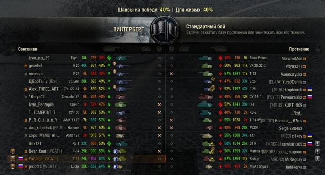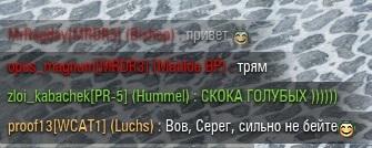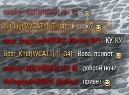 Эпик встреча, лучше/хуже сложно придумать Коты против Куниц, Руинберг с семёрками, с той стороны два "танковых друга" и знакомый по Мардеру. Разглядели друг друга в середине боя удалось забрать Самиуса, но в концовке, когда уже дэфились от домиков у базы, Володин раш на матильде остановить не удалось, засветился и получил ваншот от бишопа. сделали всё, что могли, но у них ешки в концовке решали, а наши.... но "разборки" начались после боя в личке, Вовина "предъява" мне, что я в него стрелял мой ответ и Димин коммент Вот такой вот сериал получился... Позитив и хорошие эмоции, как и должно быть от ИГРЫ6 баллов