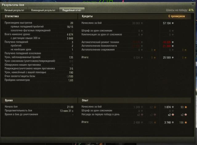 Уралмаш фармит! Вау! Только сводится долго, и увн совсем нет с новым стволом, но... как клево по 600 фугасами пулять по всяким вафлям и борщам. Да и 440 засандалить в лоб тем же ИС 4, 5, 7, 8 и прочим тежелым консервам, при этом пробивая без голды На момент выхода патча было под 300 боев и 50% побед (к стыду своему). Вчера покатал 20+ боев = +3% к статке и урон немного поднял. Разница между тем, что было раньше и тем, что стало - ощущается очень сильно.3 балла -