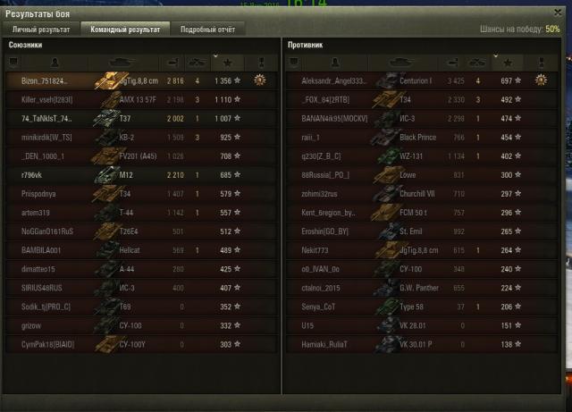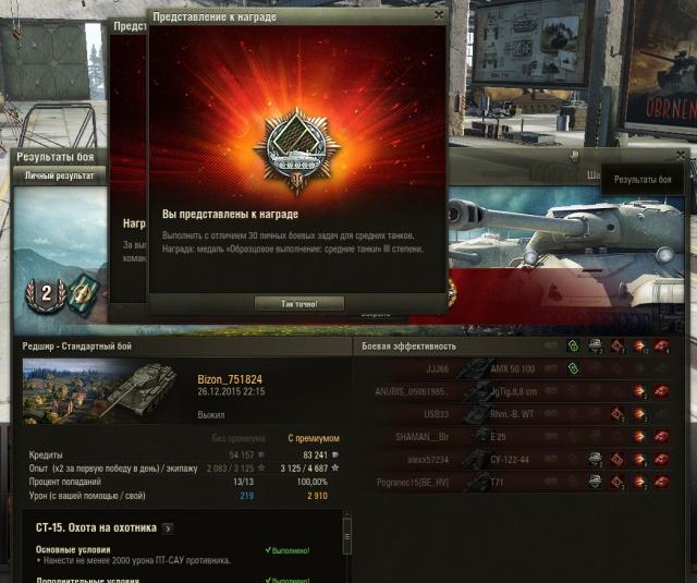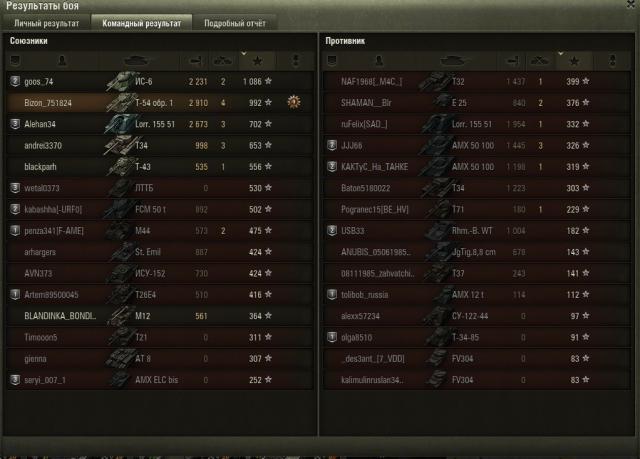 Насколько всё-таки случайны все эти лбз. Зашёл в бой, увидел, что буду играть со своим уровнем, обрадовался, что можно пострелять ббшками и пофармить. В итоге выполнил допусловие СТ-15 на концепта. Теперь можно задания либо на лт выполнять, либо на арте. Наверно буду лт катать. На арте меня раздражают промахи. http://wotreplays.ru/site/6956442#redshir-bizon_751824-t-54_pervyy_obrazec1 балл -
