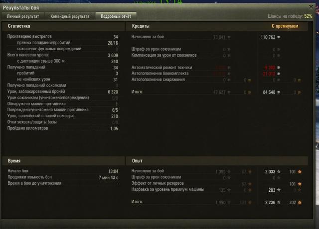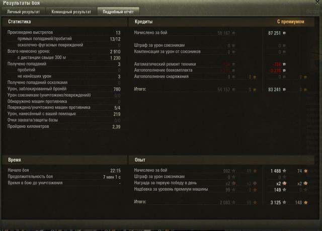 Стамеску нехило так апнули в 2015-м году. Посмотрите точность, сведение и перезарядку. Когда еще 263-й прокачивал, мне стамеска еще неапнутой понравилась, СУ-101 гораздо хуже пошел, но визуально нравился больше, потому оставил в ангаре 101-го. А с месяц назад, выпрямляя статку и набивая 3 звезды на 101м, выкупил обратно стамеску. И знаете, не жалею. После 101м на стамеске УВН еще как чувствуются) А по ДПМ-у стамеска сейчас ближе к СУ-152 с Д-25Т, только точность и сведение гораздо лучше1 балл -