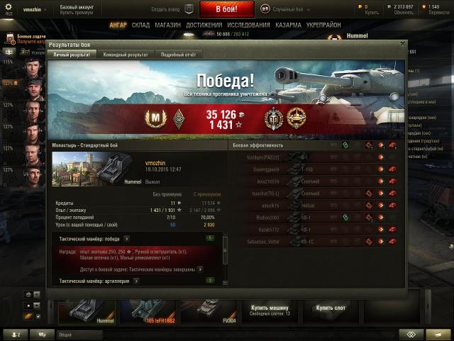 9й танк с тремя *** на стволе )) К СУ-100, СУ-122-44, M18 Hellcat, M10 Wolverine, ELC AMX, T-34-85 Rudy, StuG-III-G и СУ-100м1 добавляется СУ-152 Красив, гад! )6 баллов -
