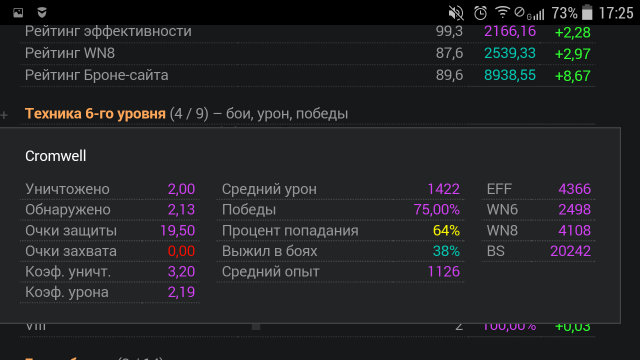 Всем удачной охоты КОТЫ !!! Ну значит сегодня решил покатать у сына крома и кромаБ. Проверить личные субъективные ощущения ... (прошу понять,ник сына светить не буду, не люблю этого) Ну значит имеем такой набор. Экипаж перелетал с одного в другой.Оборудование одинаковое. Подошел к вопросу серьезно, сел так сказать тащить. ПО стате за сессию видно. Вот немного скринов результатов боев: Ну а теперь личные выводы : КромБ - быстрее разгоняется, ср.скорость выше,проходимость выше, на месте крутится лучше .... (да,да,да я был не прав , признаю коты.... ) Но кромБ хуже идет на разворот на скорости и стабилизация все равно хуже (тут я угадал ) Провел на кроме 8 боев на кромеБ 10 боев. Вот результаты: Ну и короче, я пришел к выводу: что КромвельБ - просто лучше и комфортней !!!! Я БЫЛ НЕ ПРАВ !!!!1 балл