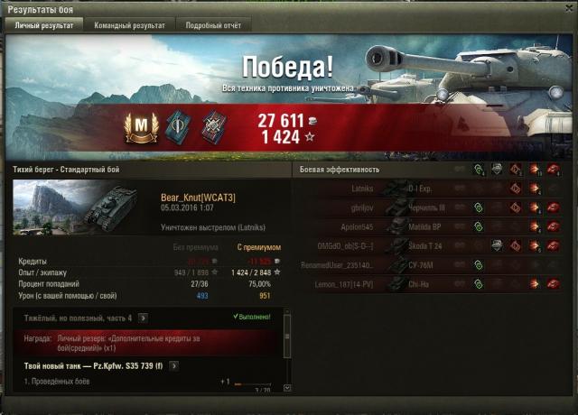 Доброго времени суток, Мальчики и Девочки С В1 начинается ветка французских ТТ. Четвертый лвл. Пройдите Это за свободку до БДРа - он танк Так как для меня ветка новая и экипажа на ТТ французов нет, то выкупил В1 и посадил туда парней с 75% общей профы. В1 обладает резаным уровнем боёв 4 и 5, так как орудие (заметьте топ-ствол!) нереально использовать на ББ против даже одноуровневых машин В целых экономии на танк был поставлен бомж-пакет: сетка, трубы, рем-ящик. Плюс стандартный пакет расходников: малая аптечка, голдовый огнетух, малая ремка. Мастера дали за 949 чистого. Не самый популярный танк у ЦА Реплей PS 1) ссылка на форум картошки по В1 - заходить смысла нет, т.к. статья там от 2011-го 2) ссылка на танковедение PPS Настоятельно рекомендую проходить за свободку1 балл -