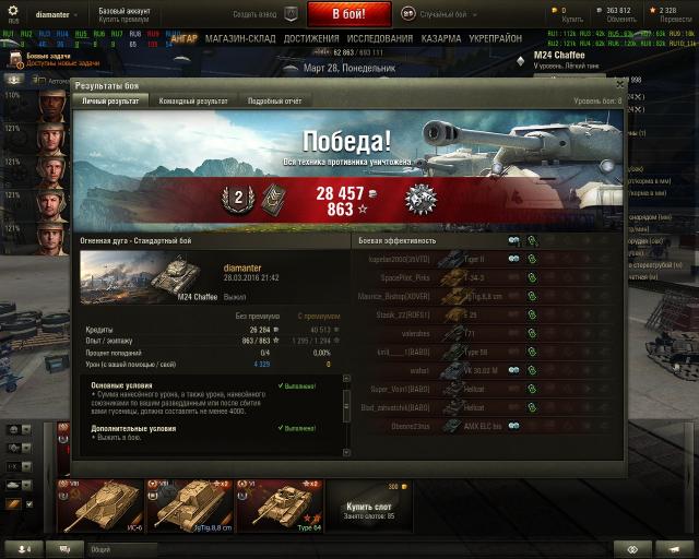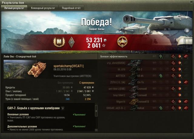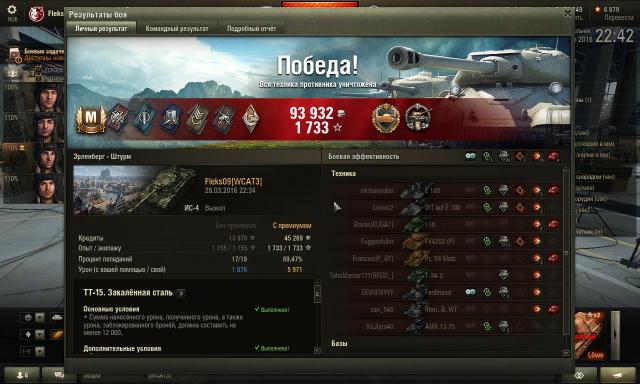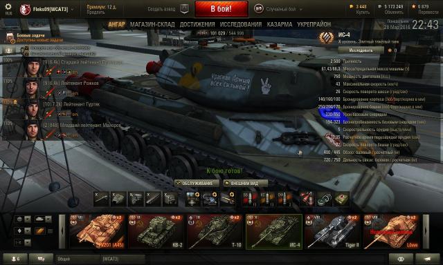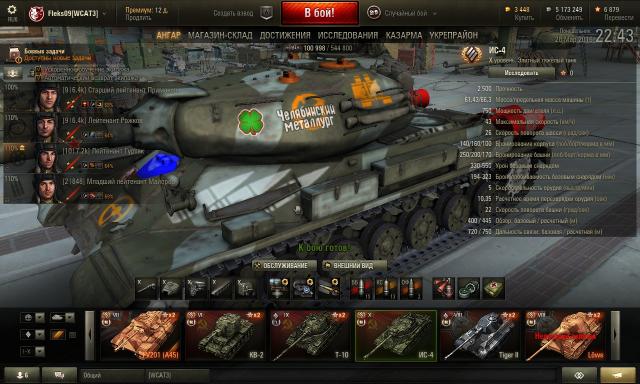 Мучал я тут было ТТ15 на 55-ку. Издевался над собой долго (целую неделю). Я конечно тяжей люблю катать, но не настолько . В роли колесниц успеха выбрал СТ-1 и ИС-4. После недели неудач, решил применить запрещенный (он же читерный прием). Я покрасил ИС-4, нанес эмблемы и т.д. Короче применил всю магию В.Г. Вот он мой красавец! И что вы думаете? Челябинский металург во главе красной армии выполнил эту задачу уже в 3-м бою Реплей2 балла