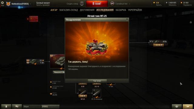 11й танк с тремя *** на стволе )) К СУ-100, СУ-122-44, M18 Hellcat, M10 Wolverine, ELC AMX, T-34-85 Rudy, StuG-III-G, СУ-100м1, СУ-152 и Т67 (по мере завоевания) добавляется легендарная Т-34, выкупленная мною в 5-й раз! - афигенный аппарат всё же! PS. Про возвращение Т-34 в ангар в ПЯТЫЙ раз писал тут: ))) PPS. Кстати, возвращаясь к режимам игр: стандартный, встречка, штурм. 2 дня назад взял 3 звезды на Т67 в штурме. Сегодня на Т-34 - в штурме ))) Сейчас посмотрю как остальные брал )5 баллов -
