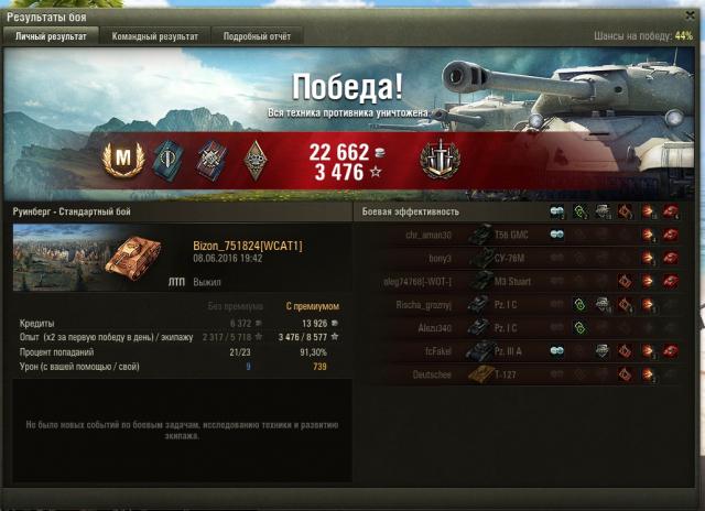 10й юбилейный танк с тремя *** на стволе )) К СУ-100, СУ-122-44, M18 Hellcat, M10 Wolverine, ELC AMX, T-34-85 Rudy, StuG-III-G, СУ-100м1 и СУ-152 (по мере завоевания) добавляется Т671 балл -