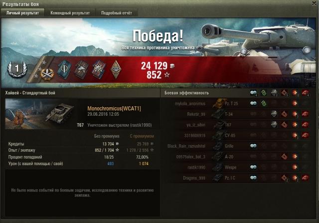 Да ты ЗАДРОТ!!!! А я свои три отметки на Т67 сделал в сливном бою, который даже показывать было стыдно. В основном, конечно, за совзводных было стыдно1 балл -