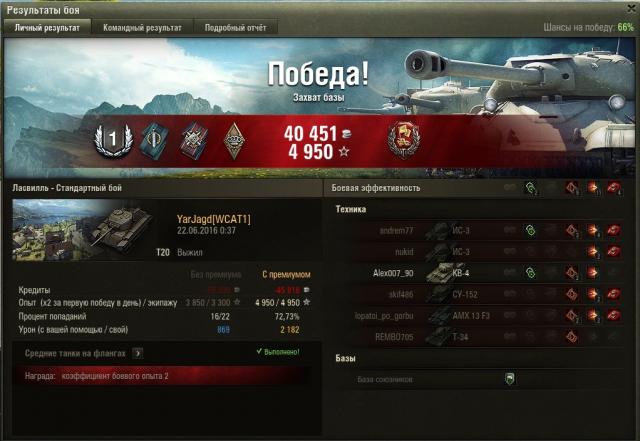 11й танк с тремя *** на стволе )) К СУ-100, СУ-122-44, M18 Hellcat, M10 Wolverine, ELC AMX, T-34-85 Rudy, StuG-III-G, СУ-100м1, СУ-152 и Т67 (по мере завоевания) добавляется легендарная Т-34, выкупленная мною в 5-й раз! - афигенный аппарат всё же! PS. Про возвращение Т-34 в ангар в ПЯТЫЙ раз писал тут: ))) PPS. Кстати, возвращаясь к режимам игр: стандартный, встречка, штурм. 2 дня назад взял 3 звезды на Т67 в штурме. Сегодня на Т-34 - в штурме ))) Сейчас посмотрю как остальные брал )1 балл