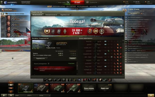 Катя, мы не дерёмся, а культурно обсуждаем А блинчик и для меня тоже оставь, пожалуйста Понятно, что мы обсуждали стрельбу под сеткой, и поэтому надо смотреть на последнее значение. Я даже хотел убрать первые цифры, чтобы не уводить дискуссию в сторону, но оставил для полноты картины. Так вот, при стрельбе разница в маскировке у Т-34 и Т-28 - 24%. Это - весьма ощутимо. В результате Т-34 часто может стрелять под сеткой, оставаясь незамеченным, а А-43 и (видимо) Т-28 нет. Кстати, Алексей, а какое оборудование у тебя стоит на Т-28? Твой путеводитель я с удовольствием почитал и раздумываю вернуть Т-28 в ангар. Но из него как раз про оборудование не очень понятно. Ты пишешь про 3 сетапа для разных тактик, а потом пишешь, что сам используешь "всего помаленьку". Сеть, как я понял, ты не любишь. Значит минимум 2 позиции оборудования у тебя зафискированы. Или ты каждый раз отдаёшь 10 золота за смену? На картинке у тебя рога+приводы+вентиль. Это - основной сетап? Про ПТ режим, конечно, согласен. Хотя не мне, Женя, тебе советовать - ты даже 3 звезды раньше меня на т-34 взял А в СТ режиме я бы играл на Т-28 или А-431 балл -