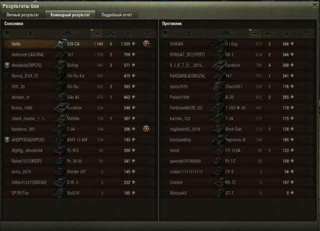 Катаю смерь-биде с досылом, сетью и трубой. Пробовал приводы, но я эффекта сильно не почуял. Играть больше стараюсь от маскировки. Из расходки использую: аптечку, рем комплект и бензин(100 окт. за серу). Афигенный эффект на сашку оказывает кофеек, но дороговато без према с ним катать. После покатушек с Дедом Пыхом стал чаще юзать голду, т.к. прибавка к дамагу в 30 hp дает свой положительный эффект. Отличный сетап: два сашки и Т49.1 балл