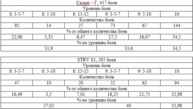 Ну что тут скажешь... Почти половина боёв в дне списка . И для стервы это ещё не так страшно с её ультравысоким пробитием. А каково играть на прем-восьмёрках типа Пилота с пробитием 190? А посмотрите, что они сделали с льготными восьмёрками? Периодически катаю Гуся. Так за овер 50 боёв на нём в топе не был НИ РАЗУ! Даже одноуровневый бой - редкость. В основном против девяток в бою 10-5 маслаешься. Короче, что-то новый балансировщик хромает на обе ноги и требует серьёзных правок. Пс: Соичу огромный респект за проделанный труд! Ппс: скачал тут на днях с торрента Ведьмака 3 (всё-таки не вынесла душа поэта) и уже третью неделю о танках даже и не вспоминаю. Уж очень качество игр разнится.5 баллов