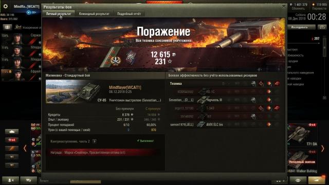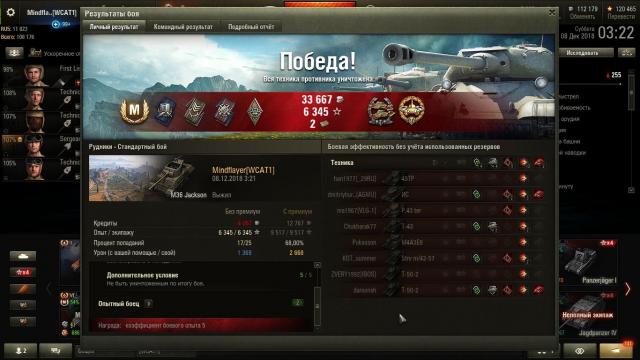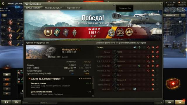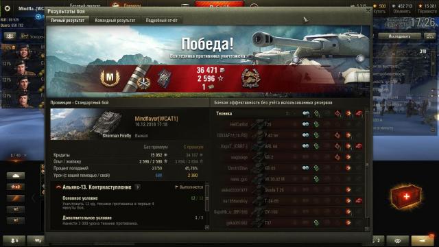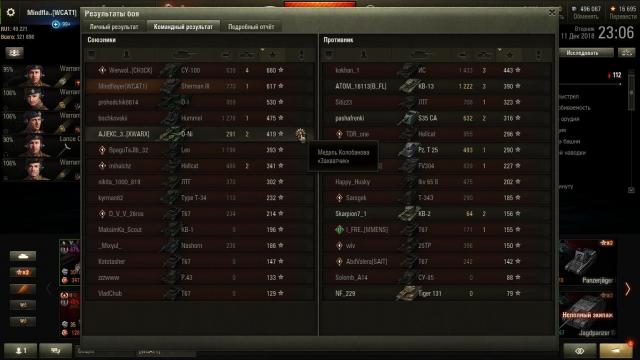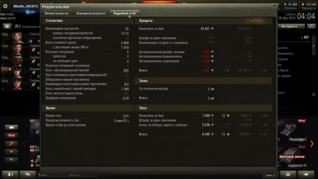 14. Потратил свободку, купил. Танк для отдыха (нет), за исключением пары моментов. Но сначала - о хорошем: 1) Броня, которою не пробивают. 5 и 6 лвл в состоянии пробить этот танк только в комбашенку и то лишь голдой (и то не все). С 7 и 8 лвл как повезет, тут уж зависит от тупости танкистов: если соперник туп и пытается прострелить вам НЛД или еще что - это бонус-код на халявный дамаг; если нет, то остается надеяться только на пушку. Броня решает и позволяет внаглую выкатываться на врага и выходить из боя невредимым. 2) Пушка просто огонь. С ББ, досылателем и вентиляцией ДПМ составляет 2536 единиц. Это при пробитии ББ в 171 мм и БП в 239 мм! Время сведения 1,56 и точность 0,29. Не орудие, а мечта. Вот только и здесь не все хорошо. Нет ни УГН, ни УВН. Плохого, увы, тоже досточно. 1) Мобильности нет. Выбрали не то направление - прокатались весь бой с нулем. Я так в первый пой попал на Границу Империи и тупо ехал за своей толпой киберспортсменов, так и не увидев врага, который поехал по другому коридору. Ну и еще вас крутят как хотят. Это понятно. 2) Обзор никакой. Только собрав в кучу все перки на обзор можно достичь 445 метров, без них танк слеп. 3) Из первого пункта выходит третий. Танк неиграбелен сейчас и вряд ли будет играбелен вообще. Это танк 6-го уровня, т.е. постоянные 46%-е дауны на КВ2 и выродки на арте не дадут вам поиграть. АТ-8 - легкая цель, которая никуда не убежит. Фугасы он не танкует. Играть невозможно. UPD: Ну шо, отыграл 23 боя, выводы сделал. Играть на этом танке не рекомендую. А так как вся ветка дальше точно такая же - не рекомендую ее качать. Да - дохрена брони, да - офигенные стволы. Все. Отсутствие мобильности убивает все. Вы не сможете уехать от врага, не сможете по-настоящему рашить, не сможете ныкаться от артовыродков, не сможете вернуться на сбитие базы, не сможете уехать из засвета, нихрена не сможете. Зато сможете принимать от лех на КВ-2 фугасы от 350 единиц, можете cocать от трех артовыродков сразу без шанса отремонтировать гусеницу, можете быть закручены любым дауном. На бой вы не влияете, потому что не совсем дауны при виде вас просто переводят огонь на другую цель, либо уезжают. На любом другом танке я бы не допустил такого низкого винрейта и среднего урона. На АТ-8 я бессилен, что видно по скрину моей сессии. Искренне жаль те 50к свободки, которые я потратил на прокачку этого беспомощного ведра.