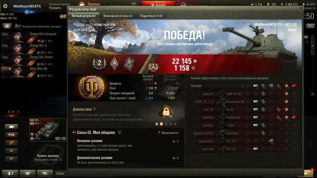 Продолжаю покорять ветку китайских лёгких танков, сегодня речь пойдет про восьмерку, которая раньше в рандоме мне попадалась нечасто, а теперь в каждом бою по нескольку штук встретить можно. Сразу по модулям - использовал топовую пушку. Стоковая лучше по ДПМ и комфорту стрельбы, но топовая пушка выигрывает за счет того, что 189 мм базовым снарядом дают возможность пробивать всяких ИС-3 в лоб, причем, не только в НЛД, но и в щеки, а альфа в 250 позволяет легко их отстрелять на расстоянии, относительно быстро и дешево. Разумеется, пушка с такими ТТХ заставила меня играть не в свет, а в урон. С задачей этой, я, кстати, не справился. Вместе с тем я считаю, что и топовая и стоковая пушки играются более-менее на одном уровне, кроме, разве что, того, что стоковую пушку придется катать на голде, которая лучше, чем у топ-ствола. По стандарту, плюсы (сравниваю только с прокачиваемыми ЛТ-8): + Высший, среди ЛТ-8, разовый урон в 250 единиц. + Как следствие, самый высокий урон фугасом - если повезет, увидите альфу в 413 единиц, можно вытряхивать все дерьмо из всяких там французов. + Высшее, среди ЛТ-8, пробитие базовым снарядом в 189 мм. + Хорошее количество ХП - 1100 единиц, больше, чем у остальных,наравне с ХВК. + Башня без брони, но ловит рикошеты достаточно часто. Целенаправленно танковать не получится, увы. + Вазик достаточно тяжелый, тараньте другие ЛТ. + Скорость поворота 58,4 град/сек - это хороший результат среди ЛТ-8. Плюсов не так много, как хотелось бы, да и некоторые из них достаточно специфические. Минусов хватает тоже: - Высокая альфа жертвует скоростью перезарядки. У меня КД в 6,58 секунд, за это время может произойти много чего неприятного. - Низкий коэффициент критуемости у фугасов. Подчас можно разобрать какого-нибудь вафлепазика фугасами и не дать ему ни одного крита. - Долгое сведение в 2,21, я его сбил до 2,16, но это долго в сравнении с другими ЛТ-8. - Точность в 0,38. Будете частенько мазать и психовать. Приятной игры. - УВН вниз -5 градусов, это реально дерьмово, т.к. в позиционной перестрелке дает сопернику преимущество, а в ближнем бою любая кочка может зарешать исход не в вашу пользу. Для меня это главный минус в танке. - Боеукладка у Вазика просто везде. Особенно страдает он от крупных калибров. Выстрел в борт под любым углом и башня на выход. - Сюда можно было бы записать самые низкие на уровне показатели максимальной скорости и удельной мощности, но они несущественно отстают от средних показателей. - Обзор в 380 метров. Вроде достаточно. Но у многих ЛТ и СТ обзор 400 и 410 на восьмом уровне. Как по мне, так получился довольно сбалансированный ЛТ-СТ, который и не плох, но и классным его не назовешь, может и у насвет и в дамаг. В Линии Фронта он мне очень понравился, в рандоме тоже нормально себя чувствует, только если не в моих руках. Танк просто... нормальный. Не знаю, рекомендовал бы я его вам или нет... наверное да, т.к. другие ЛТ-8 у меня особого восхищения не вызывают. Ну а спонсор сегодняшней темы про Вазика - три отметки. Три отметки - изведись в говно ради пикселей!