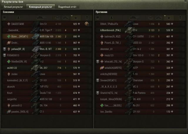 Мои раки победили. Вообще то в этом бою мог взять мастера, но после того, как я накидал 2,4к дамаги, из-за гребаной физики перевернулся и пол боя пролежал на боку, всего лишь третье место занял. Причем даже в этом положении умудрился убить ИС-3 Вот как раз на месте Дагестанка должен был быть я