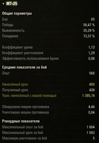 3. Самый лучший ЛТ который я катал. Три отличия получены на 85 бой. Урон+ассист (493+1385)