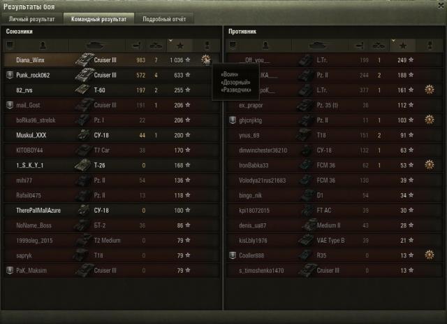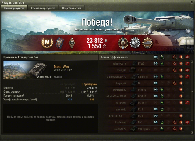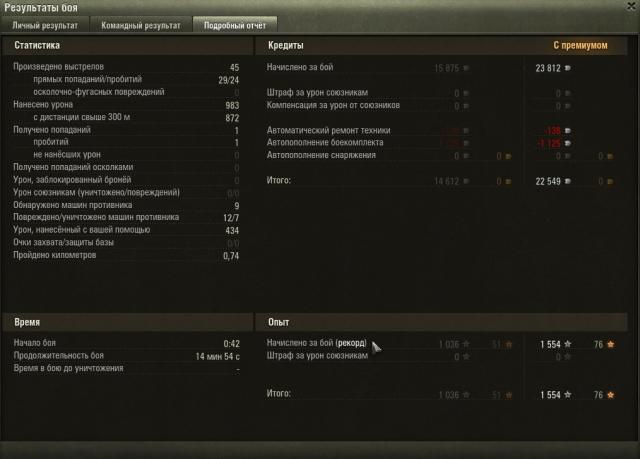 Нет, Олег. Сбитие захватов тут ни при чём. Вот следующие 5 боёв. 3 победы, 1 ничья (в Провинции), 1 поражение (на Малиновке - остался один, ушёл на гору, успел до конца боя разобрать Т-127, который пошёл зачем-то меня искать. Причём, этот чудак сам стрелял голдой, а когда в ответ получил в мордаунт такую же, страшно рассердился и страстно ругал проклятых голдострелов... ) Кстати, выживаемость - 100%.