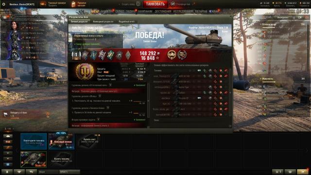 19. По совету Евгения First_ @Grande_Leone поставил на тунк ибн Шкода закалку и турбу, оставив стаб (всё пока обычное). Сменил тактику на засадно-выскакивающего тяжа (как выскочил из-за угла как выпрыгнул!) Не могу сказать, что прям сразу пошло, но пошло. А с учётом того, что я два дня мучал Калибана (поражение на поражении), то после него Шкода почти снайпер. Пока что личный рекорд. 1 степень.... почти 6К суммкарки, 4 фрага, захватчик и... 1582 чистого. Тысяча ПЯТЬСОТ осмсятдва! ПЕРВАЯ! 13 попаданий из 13, 13 пробитий. Да, это одноуровневые танки. (был там ещё 14й шот, но то блайнд в надежде на арту). 1600+ заблокированного, включая ББ Калибана (тут я мог и поиграть!). Короче, начал осознавать танк. Благодаря этому бою (насыпало за вторую прем задачу и ещё активировал множитель) закрыл полностью половую модернизацию*, думать буду завтра. И да, мне помог затащить бой 47% союзник с 3К урония. Иначе с моим КД могло быть менее приятно. Короче: Фотожоп: Видеомонтаж: http://wotreplays.ru/site/13896340#stats * - с модернизацией есть интересные штранности с цифрами... но об этом позже...