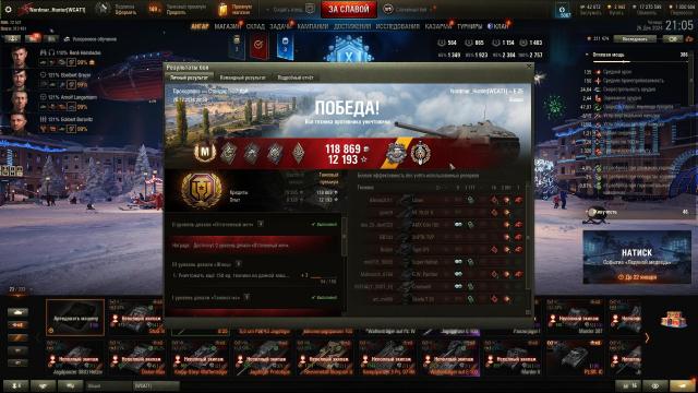Т.к. после НГ включился режим нагиба (меня), то выкладывать нечего. Даже в любимом, но ненавидимом СО пригорает регулярно. Но тут прям приятно было Тут полбоя нигхыра не делал, а в концовке каааак А потом меня кааааак понесло! В конце остался на Рейвене против 3х Арлекинов. Дал шанс последнему, тк влез в драку и вместо того, чтобы дамажить более живого добил его врага. Лишний фраг, конечно, не лишний, но последний Арлекин отлечился на трупе и выдал мне два барабана этих отличных фкусных фугасов. Обратите внимание на число ХП, которое осталось у меня! Но ДПМ на скорострельной пушке рулит, а тарана мне удалось избежать Итого, может и не рекорд мой за всё время, но в этом сезоне точно рекорд. Как по опыту, так и по фрагам с уронием. Сразу скакнул почти на 1000 мест в рейтинге СО. Пока попадают в топ5000 Фотожоп итогов боя, выигранного с 8 хп Даже видимамонтаж залил. Понимаю, что не киберкотлетный результат, но для обычного игрока неплохо, кмк http://tankireplays.lesta.ru/site/14506006#stats В бою есть всё: погони, прятки, врыв и интрига последних секунд, когда почти проиграл, но выиграл! Аве мне!