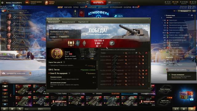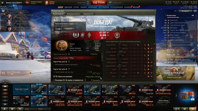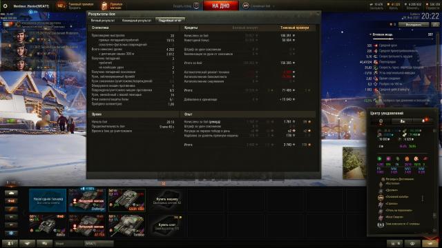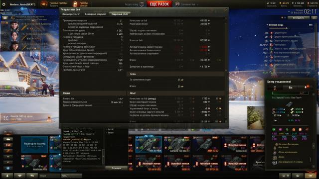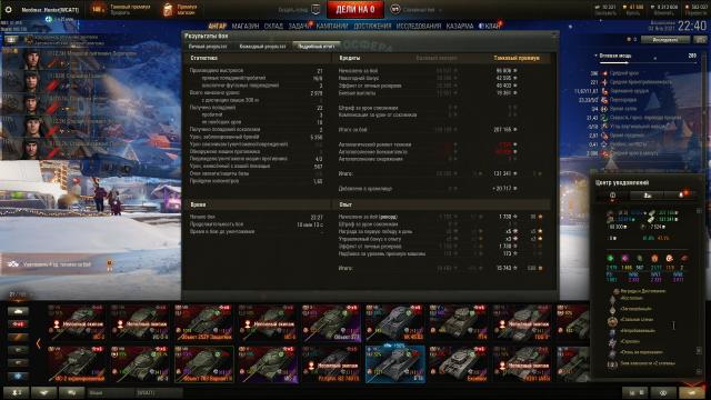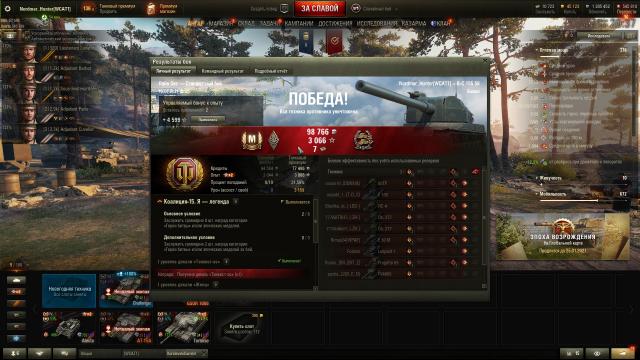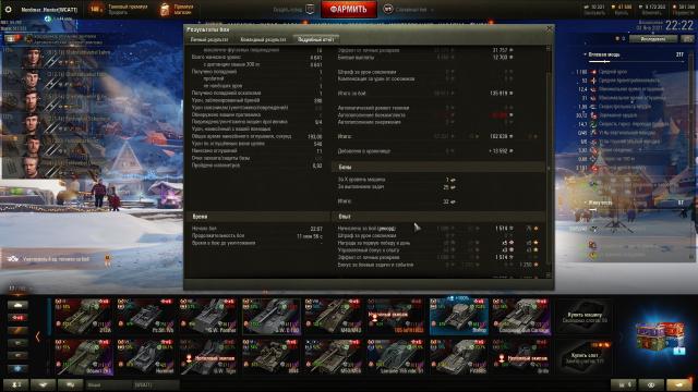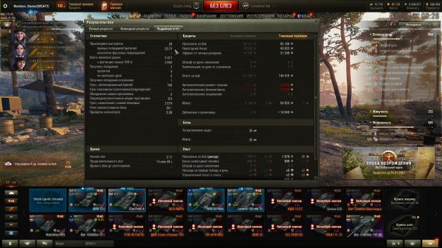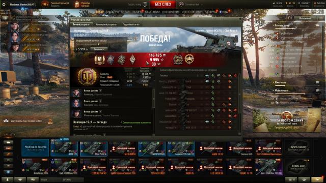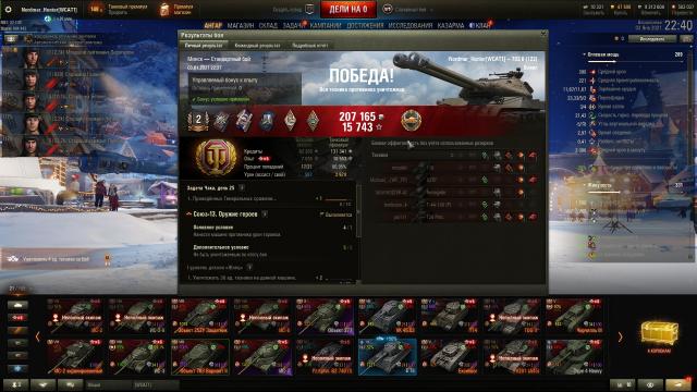 Не сильно тащерство, но... В данном бою наконец с отличием перевыполнил СТ-15 на Хтыца. Спасибо союзникам, оставили фрага на Воина. http://wotreplays.ru/site/13358387#stats Тоже ничего не обычного, но как и на Футюре, пока что лучший мой бой на ГСОРе: http://wotreplays.ru/site/13358402#rudniki-nordmar_hunter-gsor_1008 А вот это уже смешнее... я сегодня всё мучался выбором, кого взять из десяток. Взял всё-таки арту, БатШата. Первый бой... Прям 150-180 урония не хватило на отличное выполнение арта-15 на Т-55а. Но, тем не менее, первый же бой на Мастера. Хотя как мы видим, у машин 8-9 уровня 1100+ опыта на первую степень еле хватает, а у арты 10 уровня 1000+ на мастера! http://wotreplays.ru/site/13358374#layv_oks-nordmar_hunter-bat_-ch_tillon_155_58 Вот-таки доказательство того, что бой на Бате пока ровно один!
