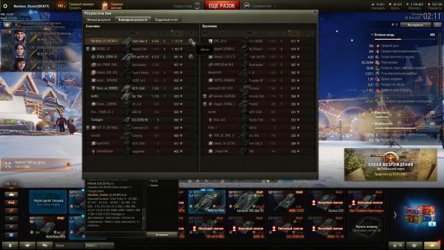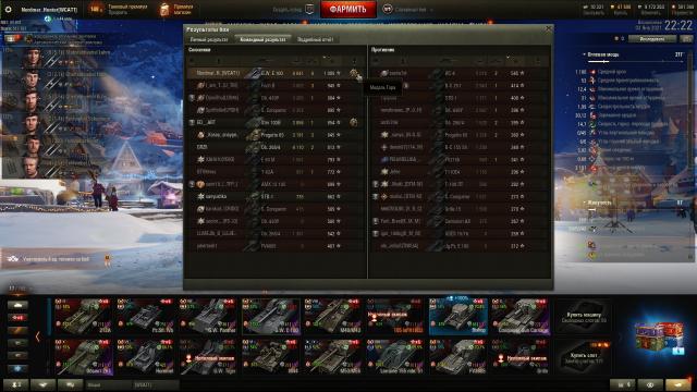Чот пригорело жОстко... Особенно на Фритюре. Два раза сгорел (Фритюр, я-то раз пять). Пытался взять разную технику... пофиг... Не, 50% еле-еле держал за вечер, но очень убогую... Сел на Футюра и говорю: "Ну или ты тащишь, или я тебя расстреляю продам!" Вообще, я так думаю, что злоупотреблять такими заявами не стоит, но.... В данном случае сработало!... Итак, абсолютный топ, с семёрками (на ОФ должны сказать "педобир, ты десяток нагни!"). Малиновка! Реально, не будь значака "заговорённый", слили бы мы этот бой, а я бы ушёл за Ангару с 2800 урония... Но нет... Несмотря на травму двигла, несмотря на почти слитое хп (осталось 300), в этот раз мне повезло: 2 непробития с 760 натанкованного (то есть сдохнуть я должен был два раза!). Калибр. Поддержка. Коалиция-15 на Экскалибур (закрыл, правда пока без отличия), заговорённый, целеуказатель, победа на последних секундах. Понимаю, что 5400 урония + 2000 насветия это не супер-пупер для многих, но для меня это очень хорошо и вообще после боя эмоции переполняют! И самое главное: знак М - Маладэц! Фотожоп: Видеомонтаж: http://wotreplays.ru/site/13365993 пы.сы. кто будет смотрть репку: в конце поехал разведать арту и СуперХэла около базы, чтобы они не сбили захват. Удачно: арту светанул, её грохнули. Футюр машина шустрая, за временем я следил, так что знал, что мне достаточно секунд за 10-20 до конца боя заехать в круг к союзнику, чтобы взять базу.