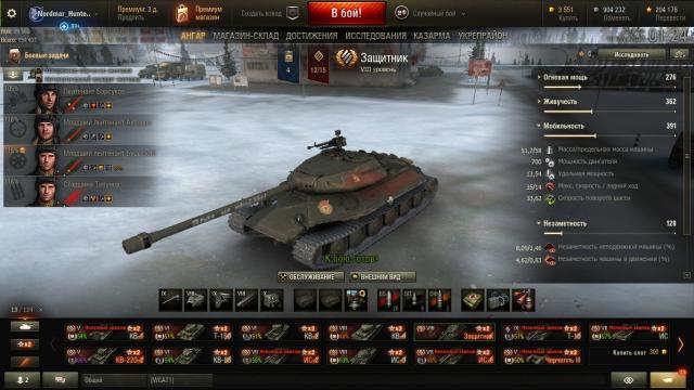Провокаторы Смотрю и облизываюсь. Сразу скажу, я видел за вчера буквально два-четыре экземпляра. Вот "Гусей" видел больше, даже взводами, а Защитника ни одного, только единичные 252У. Одного разобрал на Ягодном 9 уровня, но не скажу, что 252 так уж беспомощен. Даже НЛД раз отбил мой снаряд. Хотел поймать на СкорепГе: не сложилось. Я люблю наши ТТ. Наверное, по количеству техники в ангаре их опережают только ПТ (причём наши, ну, может быть, ещё немцы). Так что вопроса в наличии экипажа нет. Есть вопрос в целесообразности. Целесообразность заключается в наличии времени играть на всей технике. Времени нет. Техники много. Значит, танк должен быть в чём-то лучше или, хотя бы, интереснее уже существующих. Согласитесь, что просто сбивать х2-х5 за 2 килограмма деревянных, это, кхм, расточительно. Тем более, что благодаря коэффициентам за прем-технику, премы средних уровней фармят опыт для экипажа не хуже, а то и лучше восьмёрок. Играть же чисто для фарма я не буду. Тем более, что и фармящих машин хватает (тот же СкорпГы). Значит, сравниваем с тем, что у меня есть на 8 уровне из ТТ (а это только Советы). У меня есть: ИС-3, КВ-4, ИС-6. Ну и ещё рассмотрим гипотетический КВ-5 в рандоме. Написал пространный пост-сравнение, а он по....ся... Так что придётся без цифр, на память, умозрительно. Динамика у танка есть. Это копия ИС-6 по скорости и удельной мощности, превосходящий его по подвижности. Даже ИС-3 выигрывает в повороте башни всего 2гр/сек. Хотя и ИС-3 и КВ-5 чуть превосходят Защитника в скорости, но КВ-5 настолько неповоротлив, что эти 5км/ч вряд ли его спасут, тем более, что набирать он их будет похуже. Особенно в ближнем бою, где КВ ещё и не успеет доворачивать ствол за многими противниками. Насчёт обзора всё уже выше сказали. Наши ТТ это не про обзор. Нет, на КВ-1 я вожу рога, но там на 5 уровне обзор у всех посредственный. А на 8 уровне? Все вышеуказанные тяжи имеют 350 базового обзора. И всем им, считаю, усиление обзора, как мёртвому припарки. Усиливаем урон и точность, а усилить то, чего нет, невозможно. Но вы ведь не считаете ИС-3 "авном" из-за 350м обзора? И не выкидываете ИС-6 и КВ-5 из-за того же? Углы. Углы лучше, чем у ИС-3. Да, ЛУЧШЕ! На целый градус. Вы уверены, что 252 "безуглов"? Лучше только у КВ-5. Тоже на 1 градус. 6 градусов вниз-это много или мало? Для амеров мало, для наших тяжей - норма. Броня. С бронёй "всё сложно, тут всё не так однозначно". Лично я считаю так: если броня толстая, но установлена квадратно-гнездовым способом, то это хорошо в топе. Если броня похлипче, но вся такая загадочная, под рациональными углами, то это может спасти и в середине и даже на дне списка. Нет, я даже на КВ-4 танковал волшебной гуслёй снаряды от ЯгдПанцер Е100, но это было в Химках, при умелом использовании углов. Далеко не всегда так повезёт. Так что предсказать, что будет лучше себя вести: щучьи носы, волшебные гусли, читерские борта, бетонные башни с дырявыми крышами, бронепояс по типу крейсера, но со специальными местами для входа снарядов? Да Белиар их ведает! Но уверен, что часть снарядов Защитник будет отбивать, причём регулярно. А если повезёт, то и снаряды старших уровней тоже можно будет танковать. Ну и главное: пушка. Пушка это дамаг. Дамаг это победа, это опыт, это кредиты. Пушка чуть отличается от ИС-3. Она "альфовее", но чуть-чуть менее скорострельна. Кстати, ДПМ у них один-в один. И худший из этой пятёрки. КВ-5 и ИС-6 воо