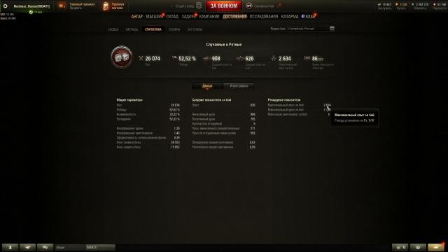 Продолжаем сливать статистику (уже 52,54%, скоро до 52% упаду) и прокачку новой техники. Фрицы. ВК30.02Д(ерьмо). 25 боёв, 5 побед. 512 урония. На 6 уровне было 900+. Отличная машина. Она отличается от всего, на чём я играл, в худшую сторону. Да, я затупил. Открыл зачем-то гусли, вместо открытия топовой 88мм пушки. Сразу скажу, 75мм ДПМный ствол, что очень понравился мне на 6м уровне, на уровне боёв 3002Д(нище) не роляет от слова совсем. Особенного на дне списка. 110 альфы могут напугать примерно никого. А сведение и стаба не позволяют играть от ДПМа в стиле "зажал гашетку и ДПМишь!". Тупо никуда не попадёшь. С топовой пушкой провёл буквально боя 2-4. Да, можно было попривыкать, постараться, но... Зачем? Это из серии "не легла, так не легла". Влил чертежи, вчера экипаж на Индейку переучил, но пока не покупал. ВК продал нафиг. А вот к 3002М(олодец), наверное, ещё вернусь. ПцКмпф4/5. Простите, фанаты. 5/4. Эммм... Да, за год с прошлого ЧР я сыграл 13 боёв и победил в 8 из них. Настреливаю по 850 в среднем, что для пятака вроде ничо. Но пока совершенно не понимаю, в чём цимес этого танка, почему от него все в восторге и как правильно его готовить. Франки. Купил две барабанные десятки. Как можно догадаться, это БатШатильон25тонн и ФошБ! На ФошеБы провёл пока только 3 боя, не почувствовал. По ощущениям: более ленивый, чем девятка. Что подтверждают цифры: удельная мощность 21 против 18.8 у топа (без учёта модулей). Да ещё и проходимость по твёрдым и средним грунтам хуже. В теории максималка такая же, но динамика не та. Возможно, с половой модернизацией будет веселее. Из приятного: немного растёт точность (вражьей Стерве уложил 3 из 3 в лючок, правда там дистанция небольшая была), немного растёт стаба и немного быстрее сведение. Возможно, заменю приводы на закалку. Всё-таки Фош часто играет вблизи, а ХП у него маловато. В дикой броне пока не замечен, видать приборы все знают и все пробивают. Из очень приятного, это 6 снарядов в барабане. 2400 потенциала. Круть. Плюс два снаряда за неполные 4 лишние секунды? С четыремя часто оказываешься в положении "ни рыба, ни мясо". Тут даже половина барабана это 1200 урония. Сегодня встретил Ягу100 в борт, у неё было 1,5К хп. Первый раз она снялась с катка ремкой, второй - в ангар. Пока катаю вент+приводы+УМП. Рассматриваю вент+закалка+турбина. Ну или вент на УМП, благо, они тоже по категории "огневая мосчь" идуть. БатШат25т. 12 боёв, менее 1,5К среднего, 58% побед. Пока особо нечего сказать. Неплохо. Было пару неплохих врывов, было пару раз мазал почти весь барабан в упор. Будем посмотреть. Тяжёлые франки или Жосс Бомон отправляется покорять АМХ50В. АРЛ44. 10 побед в 11 боях. Машина -.... ну машина.... Ничем не запомнилась. Стоковая пушка слишком слабая. Разные вариации 90мм уже веселее: альфа повыше, пробитие получше. Едет, в целом, прилично, динамики хватает. А вот брони почти нет. На полноценного тяжа, имхо, не тянет. Уж лучше Т-150 с альфой в 300ед и отличной бронёй хотя бы в одноуровневых боях. Почему так быстро прошёл? Семёрка была открыта случайными чертежами. АРЛа продал, АМХ мле чего-то там на 7 уровне даже трогать не стал. Открыл какой-то там модуль для открытия 50/100 и влил немного чертежей в восьмёрку. Пока ещё не купил, но уже предчувствую страдание. Из приятного: почти все орудия (или даже все) уже открыты. СомуаСМ 17 боёв, 53%, средуха 1400 (на Бураске, если чо, на 250 меньше! но Бур это почти ЛТ). На данный момент держит реко