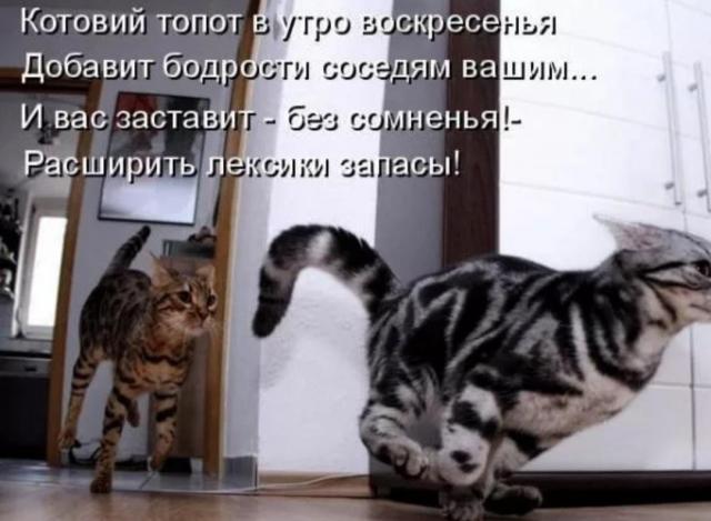 У меня старшая кошка везде за мной дома ходит. Единственное, спит или в ногах или у детей ночью. Так, даже когда в ванной, она рядом сидит. Если за компом, в основном спит за спиной на диване. Малая же, когда у компа я, спит рядом на комод, свесив лапу /хвост /голову в сторону монитора) То отзеркаленое изображение) Или фотка к нам пришла из параллельного мира, где всё отзеркаленое)