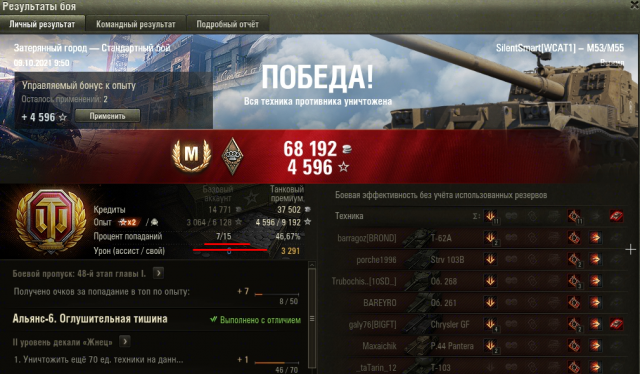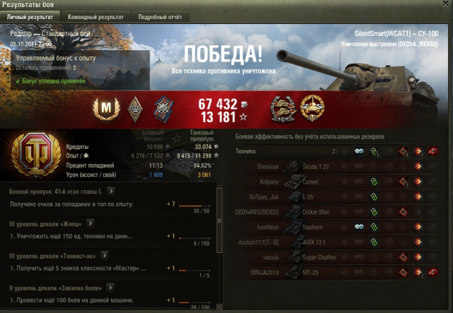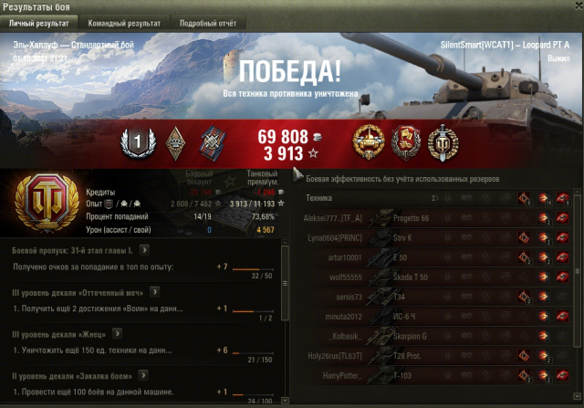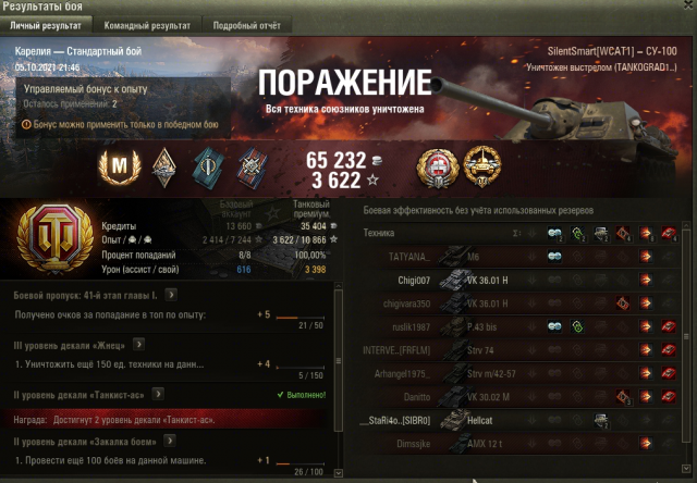 Разрешите и мне немного хвастануть )) Не, рано я списал СУ-100 со счетов... могёт, могёт )) 2 боя подряд За 17 боёв, % побед просто удручающий... какие же остолопы в танки играют PS. Тащилово. С сыном (+ ещё пару танков) вытащили со счёта 2-8. Разобрали всех уже на нашей базе, и в плотном контактном бою. Уффф
