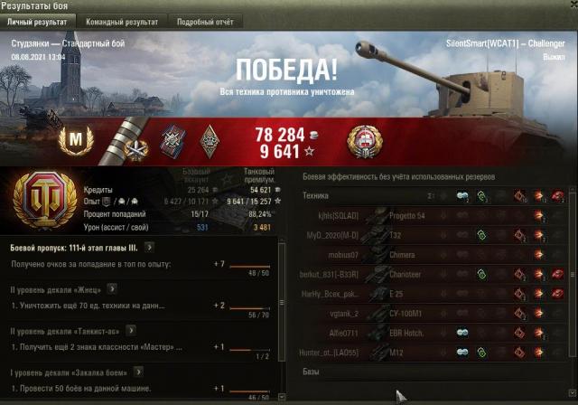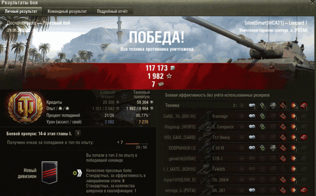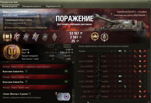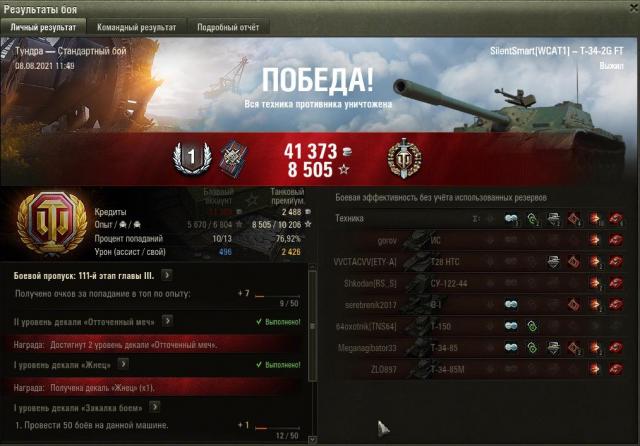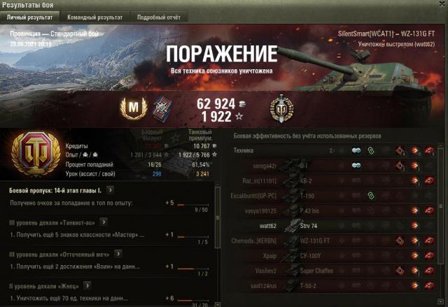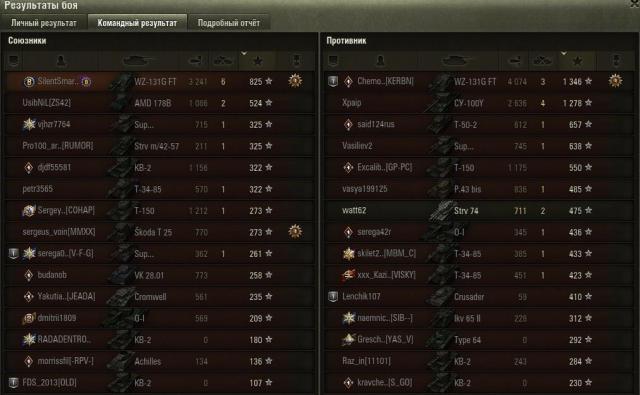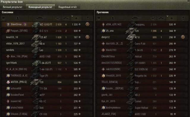 23й танк с 3*** к СУ-100, СУ-122-44, M18 Hellcat, M10 Wolverine, ELC AMX, T-34-85 Rudy, StuG-III-G, СУ-100м1, СУ-152, Т67, Т-34, S35-CA, Объект 416, Т25 АТ, WZ-131G FT, ЛТГ, СУ-85И, Т-34-85М, Т-34-2G FT и Udes 14 Alt 5, Super Hellcat и T20 (по мере завоевания) добавляется Challenger Огромное спасибо Андрею @KoT_u3_KJIaHa_KoToB, при активной поддержке которого за последние 2 недели удалось набить ))) Ну и на бонус - тупейшая карта Тундра, где нужны башня и углы, которых вообще нет на китайской ПТ-7 ))))) Воин в потненькой каточке Половину боя просил о помощи - никто не отреагировал, воевал практически в одиночку, потом ещё и помогал нашим )) Реплей если кому интересно http://wotreplays.ru/site/13670593#tundra-silentsmart-t-34-2g_ft