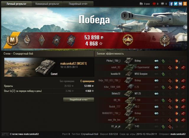 Вчера с Саней выкатили девяток. Я М103, Саня на Центе 7/1. Ну что сказать? Получился тащунчик и не получился мастер: http://wotreplays.ru/site/6715010#stats