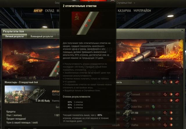 Когда-то проходил Сотку на 100мм пушке, дрын тогда не пошёл совсем. Ну а недавно решил снова выкатить, теперь всё наоборот, неудачно начал на 100мм, а вот 122 пошла хорошо. 75% попаданий, средний урон перевалил за 1100, ну и 3 звезды к 150-му бою. Подозреваю, что с тех пор сократились реальные дистанции боя, ну и недостатки 122мм пушки стали менее заметны.