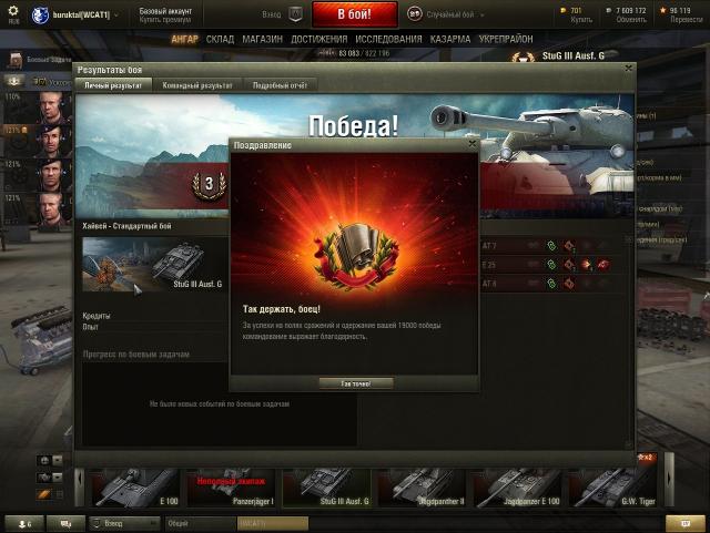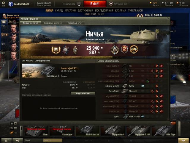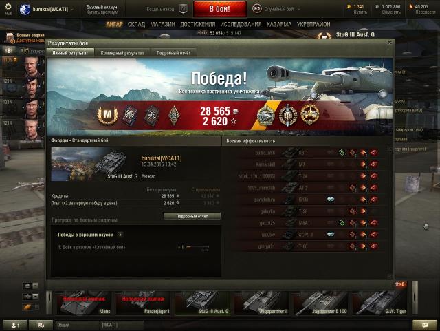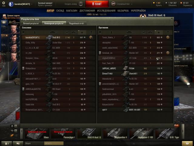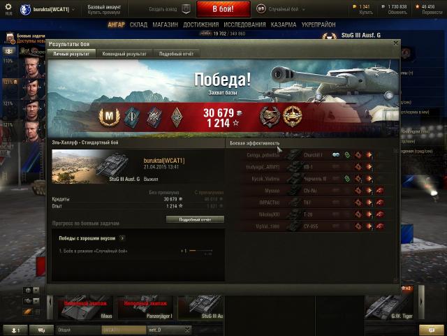 Ничья, которую, пожалуй можно внести в актив. И всё же я расстроен, потому что считаю, что такие бои можно и нужно затаскивать. Ошибся я, с Черчелем надо было не так играть. Хотелось бы услышать ваше мнение. http://wotreplays.ru/site/5257915#el_-halluf-buruktal-stug_iii_ausf_g У Вас кончились снаряды? Тогда мы идём к вам на базу! Классический пример, когда не хватает боекомплекта на штуге. Сколько раз говорил себе экономить, ничего не получается. Выиграл бой захватом, с пустым БК. Очень сильно помог союзник на т67, без него ничего бы не получилось. Кстати по требованиям подходит нам. http://wotreplays.ru/site/5257924#el_-halluf-buruktal-stug_iii_ausf_g