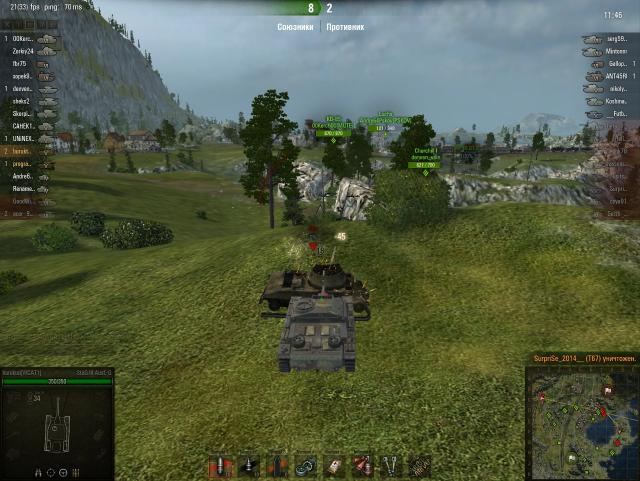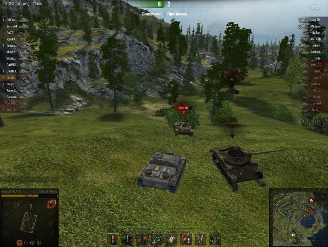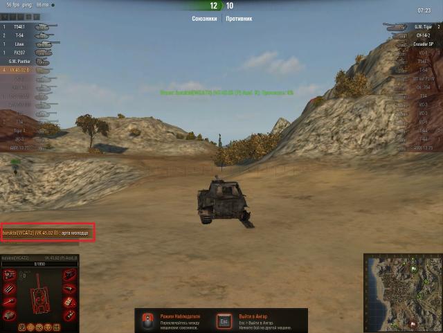 Когда надоедает пт-шить, выкатываю тапок, чтобы почувствовать мощь брони этой брутальной машины. В лобовом столкновении тапку наверно нет равных, даже против 10-ток может тащить. Главное это всегда нужно быть "лбом" к противнику, никаких ромбов, "только лоб". Пробить тапок в лоб очень трудно, даже голдой. Вот, что говорят противники в чате (не большая подборка) А вот для арты - мы желанная цель и лакомый кусок. Страдаю от арты очень сильно