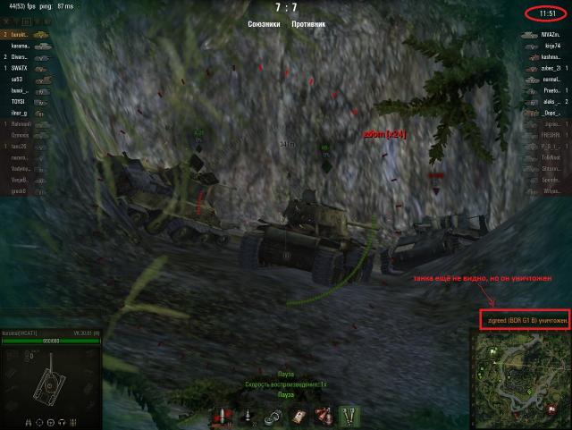 За 9сек (3 выстрела) убил 2-х противников без засвета! Знал, что с этого направления пойдут, увидел как "зашевелились" трупы. 3 выстрела между между ними . Итог 2 фрага. http://wotreplays.ru/site/4471354?secret=172316d8158efb0342097cc4555d5e6f- время 11:51