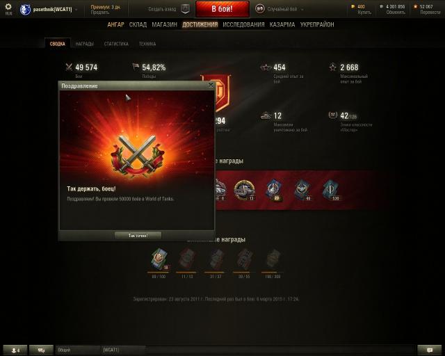 Всего 245 боев на этом чуде. Очень нравится танк. Я так глубоко в анализ таблиц, коэффициентов и пр. ТТХ не погружаюсь. Воспринимаю танки интуитивно. В зависимости от предполагаемой манеры игры (активной или пассивной) могу менять модули. Досылатель и вентиль могу сменить на рога и сетку. Бывает же ленивое настроение. Вожу подкормку для экипажа в ущерб огнетуху, за что часто плачу пожарами до выгорания. Экипаж на него сел с ИС4, что-то около 3 перков. Недавняя акция позволила сбросить за серебро умения командира и добавить лампочку, прокачав потерянную разницу в течение 10-15 игр. ББ считаю обязательным для всех танков.