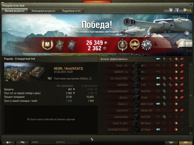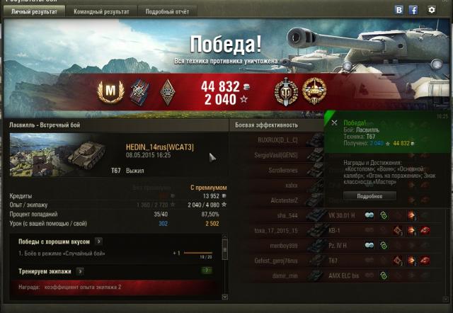 Ну вот наконец-то и у меня получился колобанов http://wotreplays.ru/site/5362038#zapolyar_e-hedin_14rus-t67