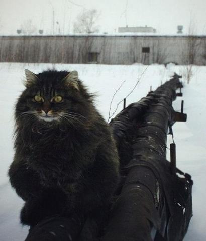Проводница поезда Псков-Москва кормит кота Феликса во время короткой остановки на Старой Руссе. По словам женщины, Феликс приходит каждый день к хвосту поезда в 22:40 в течении нескольких лет. Все проводники знают кота и заранее готовят колбасу.