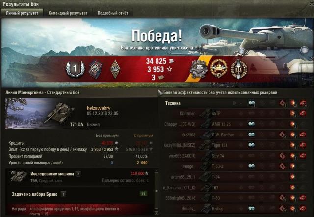 Мне он как-то хуже играется, слишком уж нетороплив во всём. Не хватает терпения, хоть и экипаж приличный. А на Р26 воюется легко и весело. У командира 1.5 перка, у остальных - 0.7. Вот, сегодняшний ночной бой: