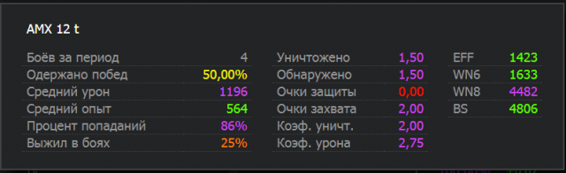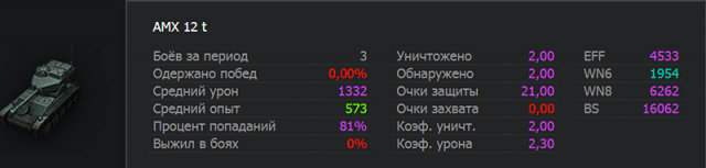 Так как играю на аккаунте сына, то процент побед меня почти не волнует, главное - WN8. А по нему и по рейтингу эффективности я этот акк уже окрасил в зелёный PS: Вспомнил знаменитую цитату Кличко: