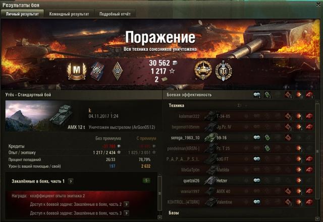 Что-то я разочаровался в n/a в последнее время. Не в плане боевых его качеств, а по доходности. Вчера был обычный по эпичности бой, ББ закончились, стрелял голдой. По итогам - минус 44К серебра! На 4 уровне! Тем более, что играю без према. Думаю продать этого транжиру, а экипаж пересадить на Леопардика