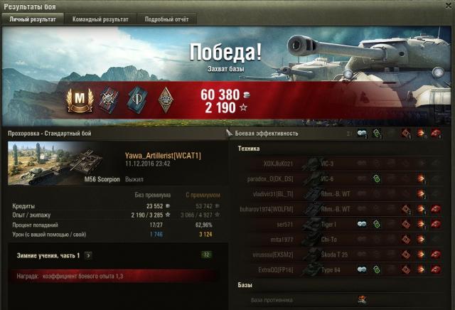 Купил недавно по акции. Успел провести 44 боя, 61.36% побед, средний урон - 1183. Всё только соло. Случайно попал на нём в 1000 (842 место) в асах. Но даже первый класс получить не смог