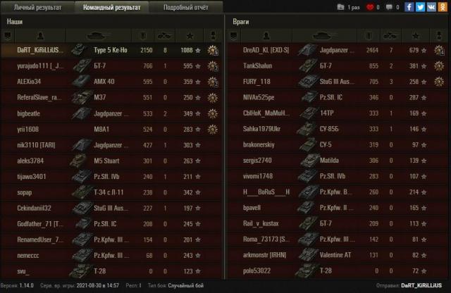 На пушке поди катали? У меня кв хронически без своего экипажа (тренажер) и бои зачастую очень веселые). Сам катаю с У-11 на шипучках. Забавно, но единственного адекватного БДРа встречал очень давно) Пулл А тут с 7и)