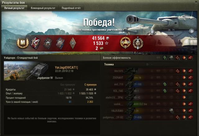Сотка "пройдена", оставлю в ангаре, всё таки раздавать ваншоты пятёркам и откусывать по 400 от восьмёрок - не каждому дано!