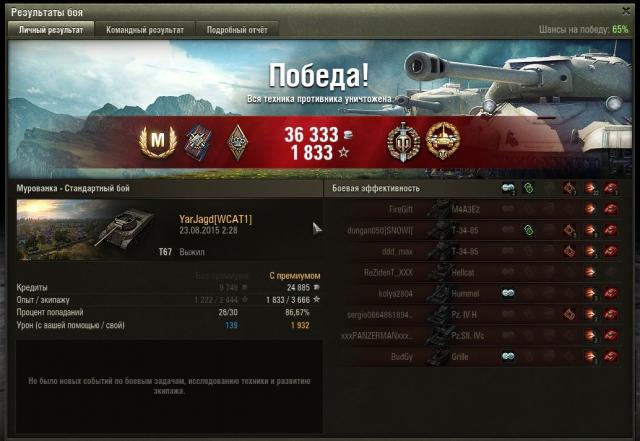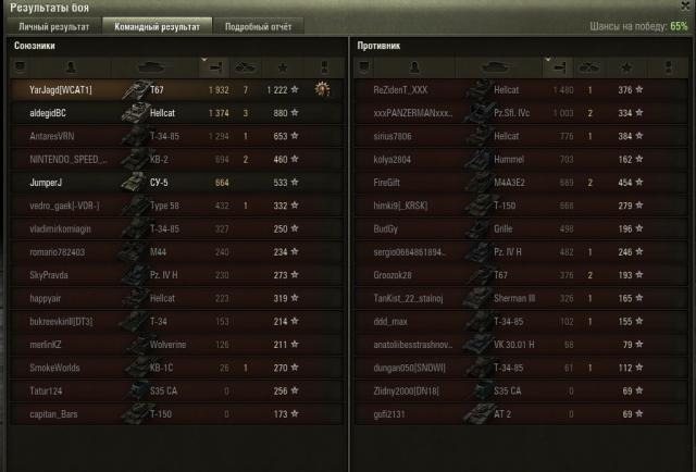 Спасибо, посмотрел. Не, как я и думал, я отсветился, и когда арту разбирал, меня не было видно. Второй раз засветился, когда ваш 67 приехал. Ты была уже сведена туда, а я даже среагировать не успел - сразу же прилетело. Что скажешь, молодец! И с заслуженной победой!