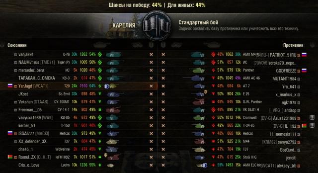 Смешной бой Сталинград с 9-ками, низ списка. Топы не обратили внимания на Т20? Зря! 5 фрагов и Оськин! При 7 выстрелах, 6 попаданиях и 700 дамага Перк "фраготыр" прокачан на 100% http://wotreplays.ru/site/6177108?secret=ac9fab797b85b46923c12beb51de34cc