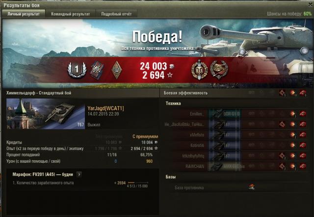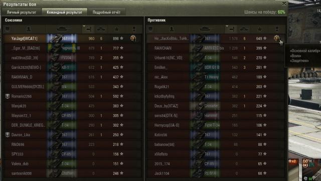 Дуэль без права на ошибку. Это был первый бой после патча, поехал посмотреть как моды встали, не рассчитывал напрягаться и тащить. Но пришлось. Ещё при загрузке, увидев пять 67 у нас и четыре у них, да ещё кучу т34, понял, что будет весело. В результате веселухи, остались мы с одной из 67 ПВП, оба шотные. Бой провёл лучше он, а выиграл я. Так бывает. Кстати, убрал все четыре ихние 67. личка после боя http://wotreplays.ru/site/5876674?secret=ac9fab797b85b46923c12beb51de34cc