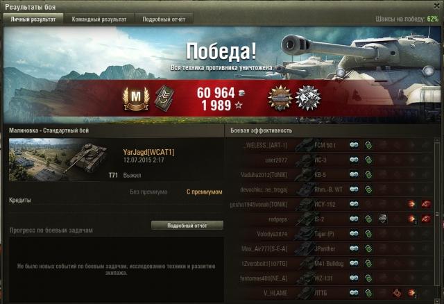 Т20 в топе, но всё равно поехал светить, ведь Малиновка же Почти 2к своего и 5к+ по засвету, в итоге Разведчик+Дозорный http://wotreplays.ru/site/5806747?secret=ac9fab797b85b46923c12beb51de34cc